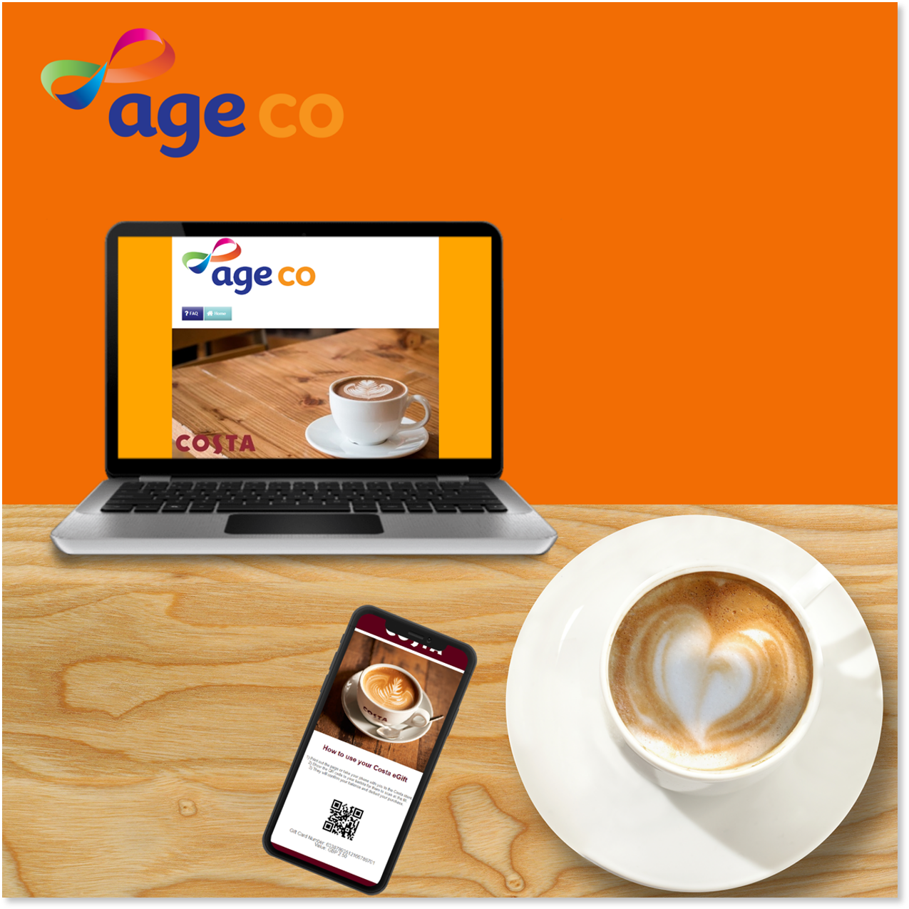 A free Costa Coffee e-gift/gift card as a “thank you” from Age Co Communicated via Age UK shops, Age Co website, mailings and call centre